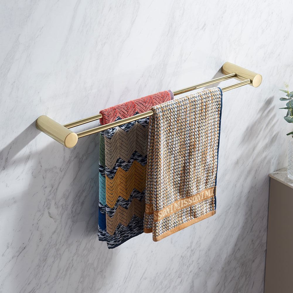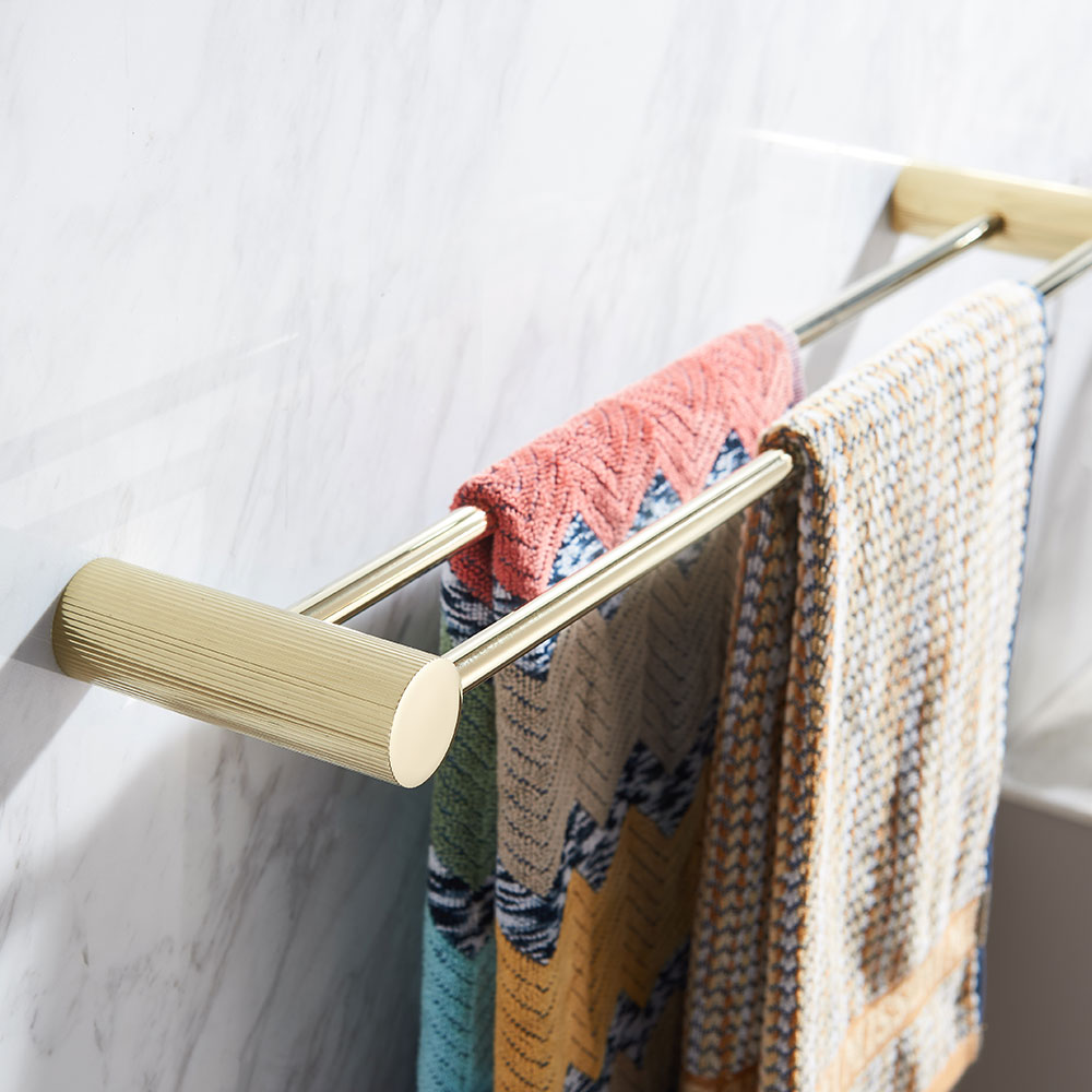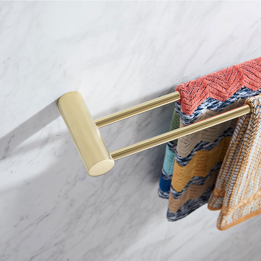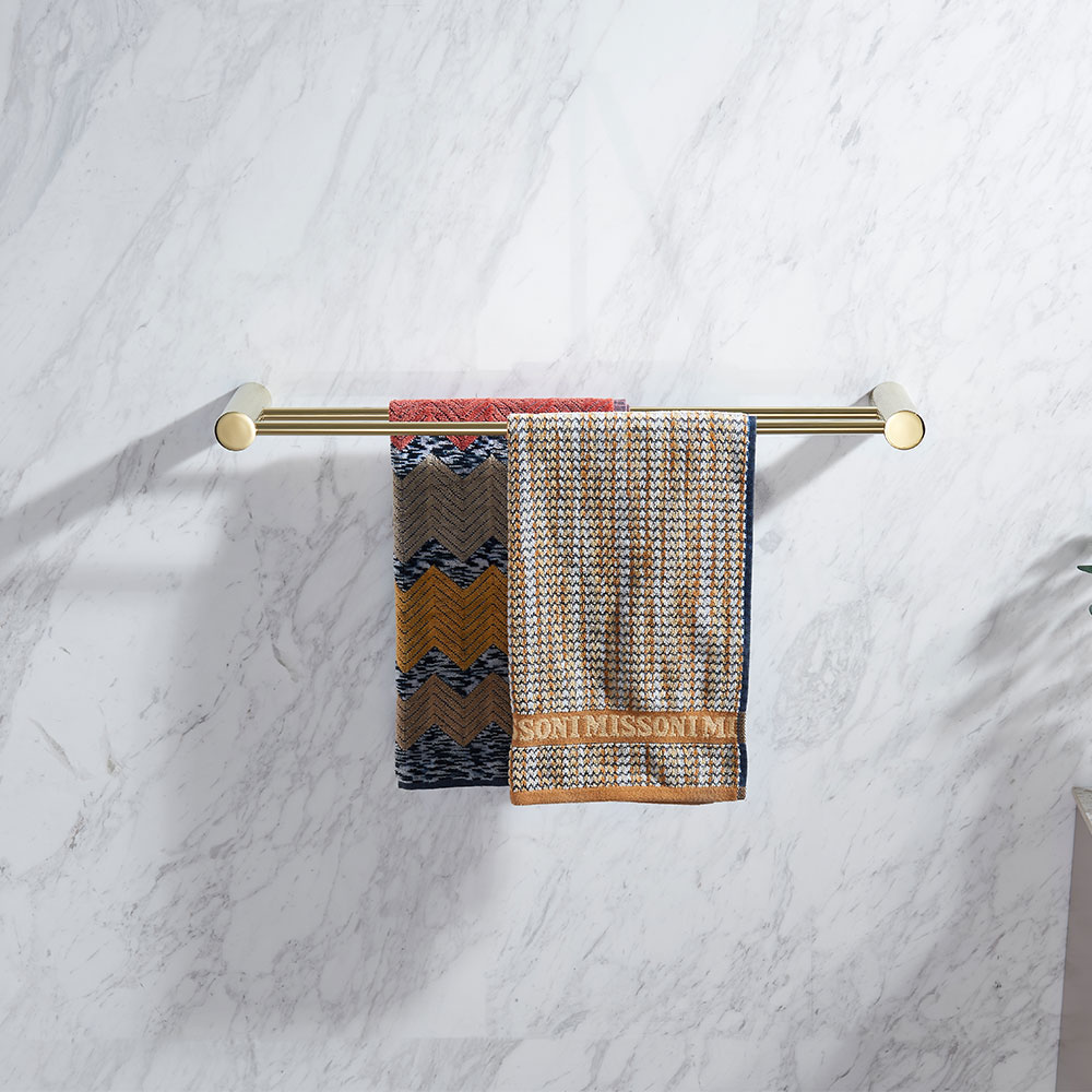 Håndklestang dobbel i rustfritt stål farge gull polert.