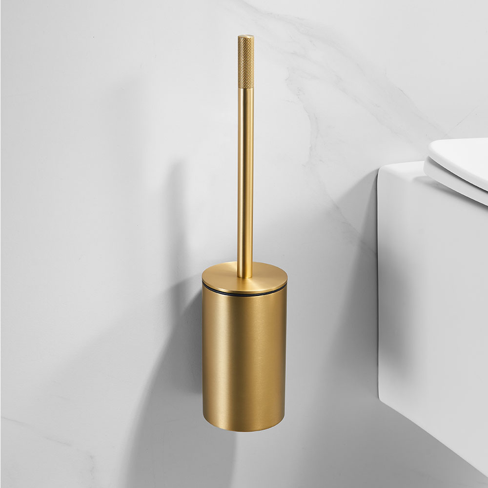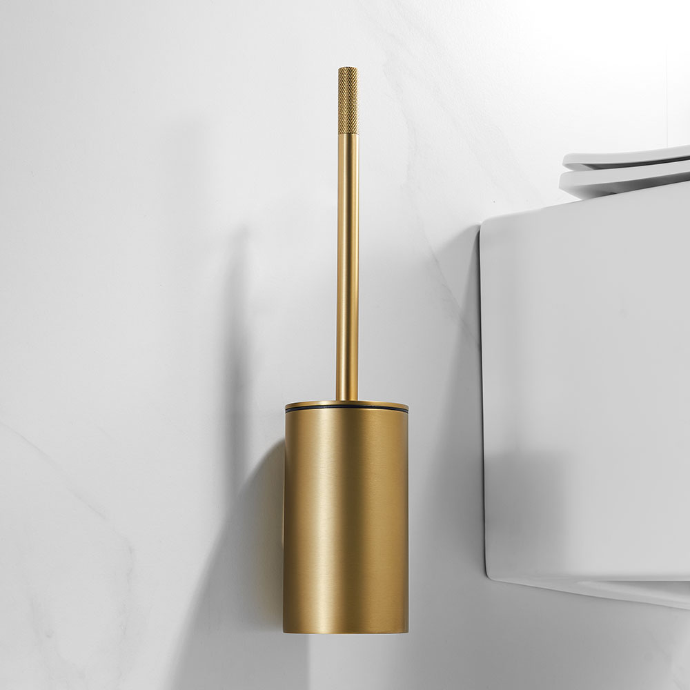 Toalettbørste i rustfritt stål farge gull børstet.