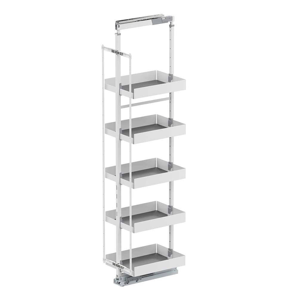 Skaphøyde: 1900-2140 mm. Skapbredde: 400 mm. Skapdybde min. 480 mm. Verktøyløs montering av rammen til uttrekksskinne. 3D frontjustering. Kraftig, støysvak uttrekkskinne. Fulluttrekk med demping og softclose.